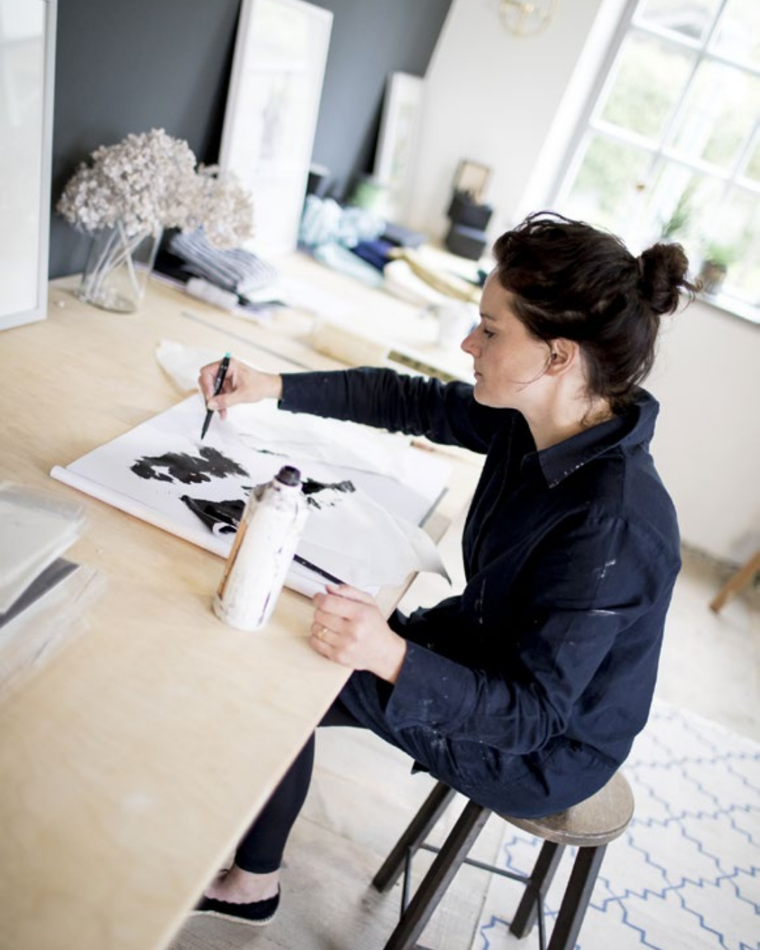 Im Kreativteil arbeitest du mit Tusche und Monotypie auf hochwertigem, weichem Papier.